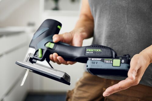 Mit nur 2,3 kg Gewicht inklusive Akkupack und schlanker, ergonomischer Bauform ist die kleine Akku-Stichsäge auf das Wesentliche reduziert: rechtwinklige und gerade Schnitte bei Materialstärken bis zu 40 mm. Die Bedienung ist einfach. Ein fester 90°-Tisch und eine für jede Sägeblattbreite passende Führungsrolle sorgen für schnelle Einsatzbereitschaft, ohne aufwendige Rüstzeit. Auf Arbeitskomfort und materialgerechtes Arbeiten musst du dabei keinesfalls verzichten. Mit dem werkzeuglosen Sägeblattwechsel sowie der Drehzahlverstellung mit Automatik-Anlauf schaffst du dir jederzeit anwendungsgerechte Bedingungen. Ebenfalls besonders handlich und dabei ein echtes Power-Paket ist der passende Akkupack: Der leistungsstarke TBX 4 Akku sorgt für schnellen Arbeitsfortschritt und ist kompatibel mit all deinen 18V Akku-Maschinen und Ladegeräten.