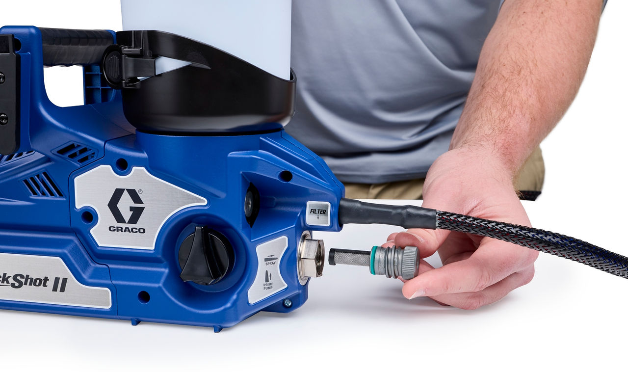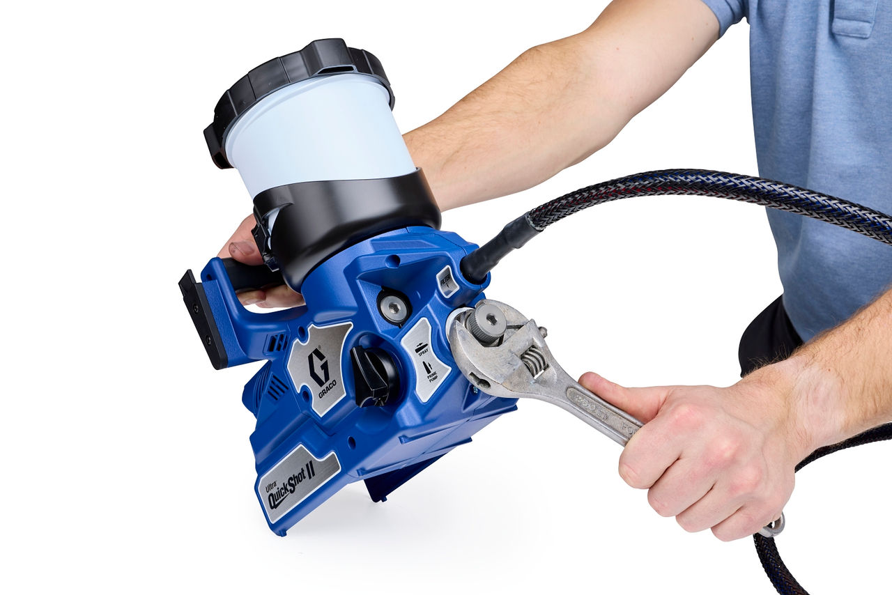 Die Ultra QuickShot II beschleunigt das Arbeiten und sorgt für ein makelloses Finish. Für noch mehr Mobilität: Diese Geräte sind leicht, kompakt und kabellos, und ihre Elektropistole arbeitet praktisch ohne Spucken. Der neue Quick Flush™ Modus reinigt die Unterpumpe in der Hälfte der Zeit und das Easy Out® Filtersystem sorgt für einen kontinuierlichen Farbdurchfluss und weniger Stillstandszeit.