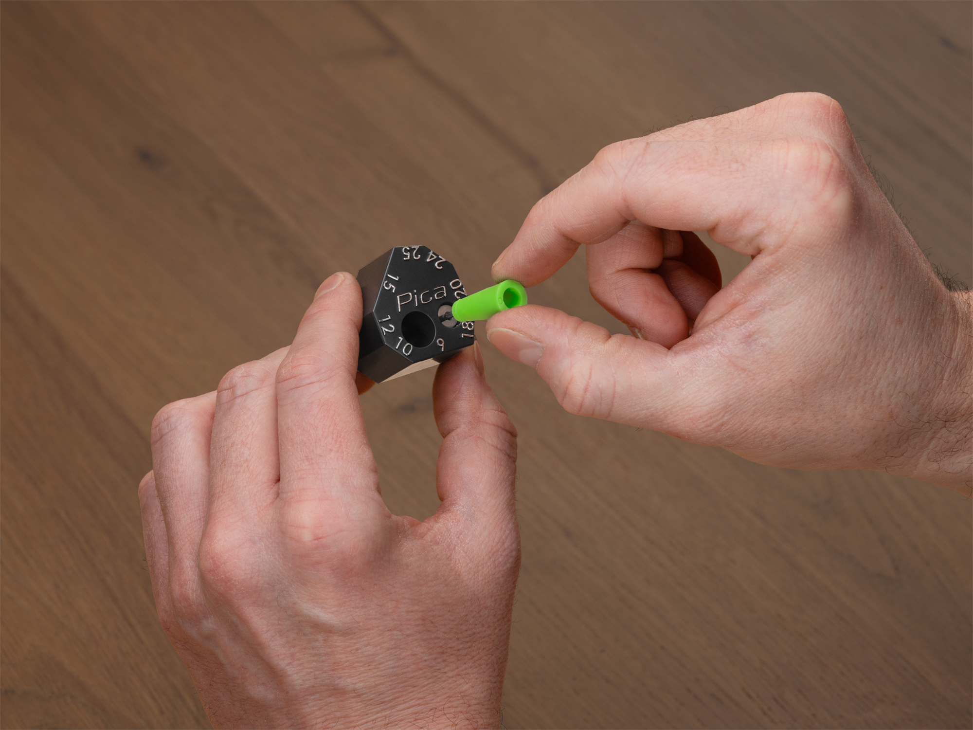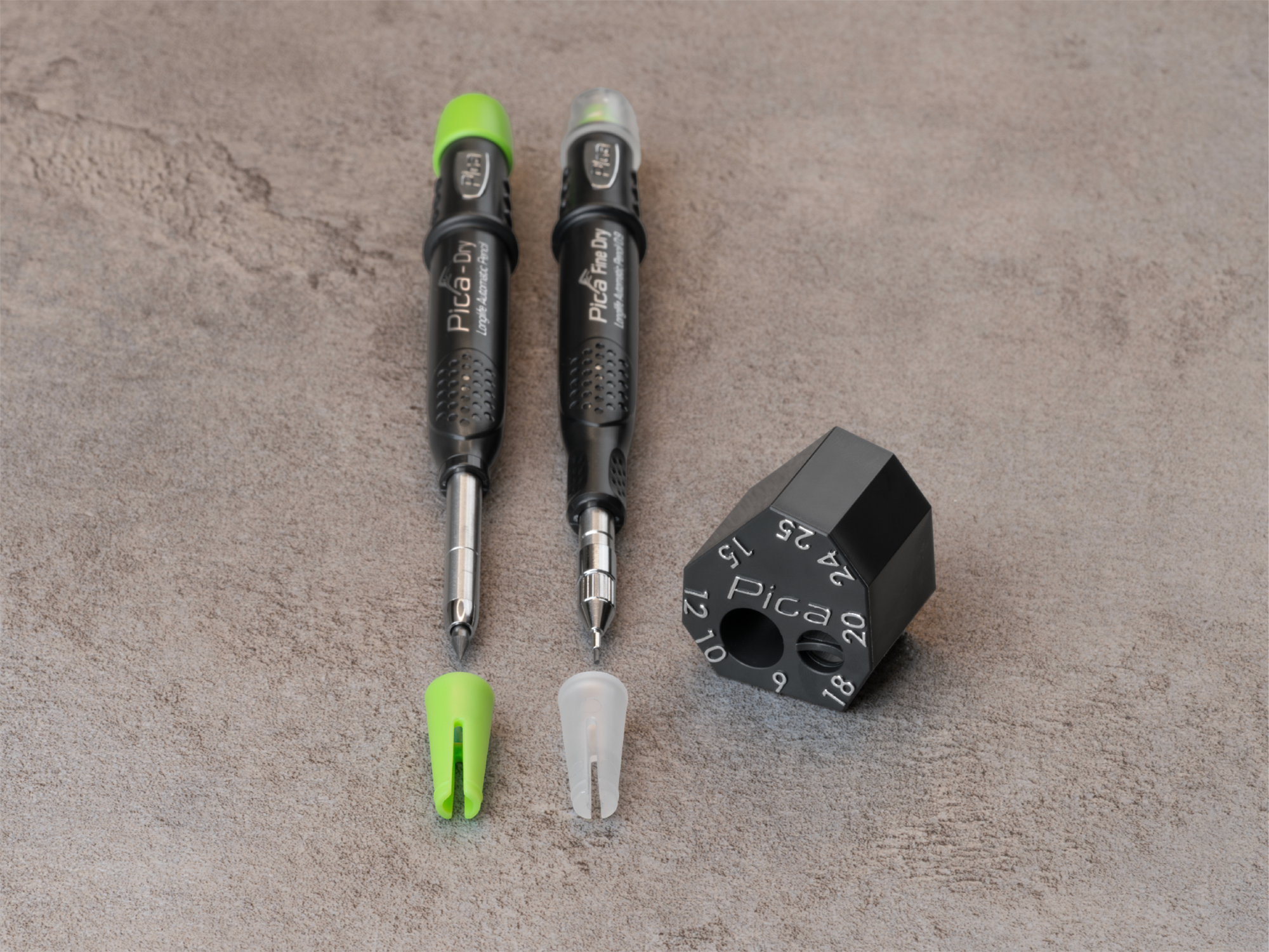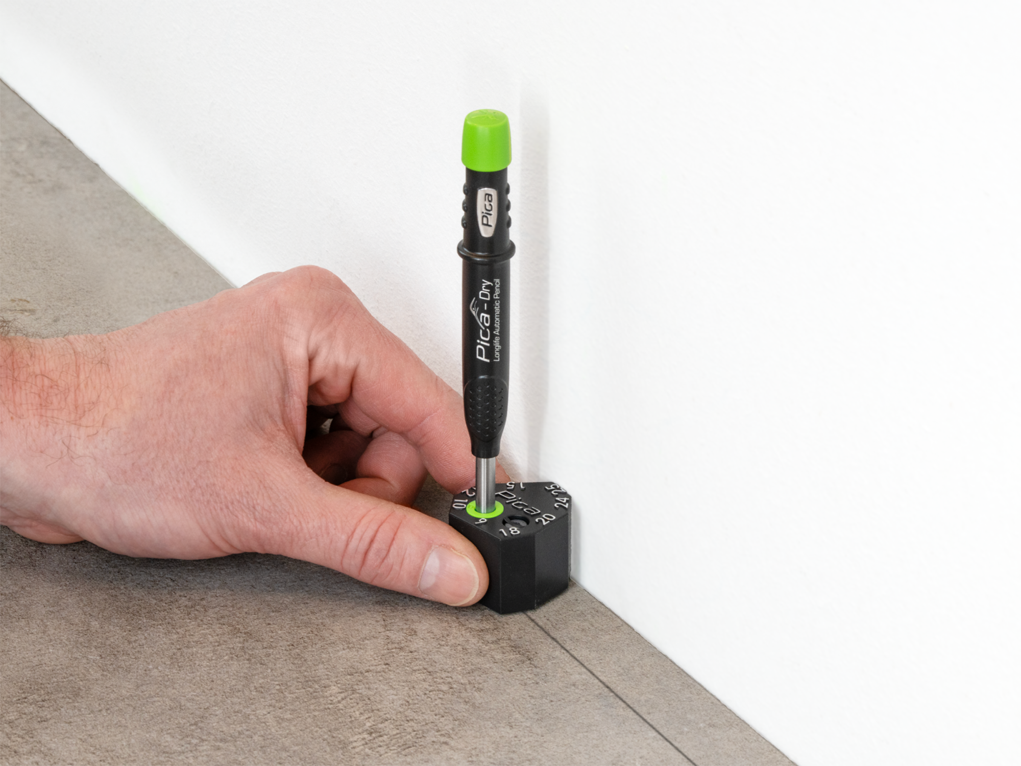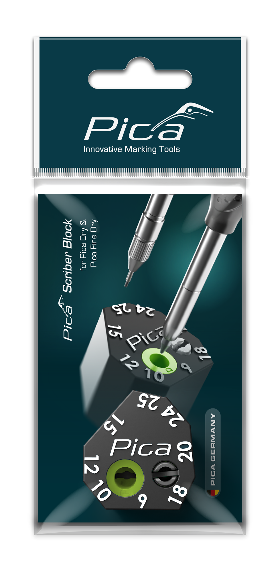 Der Pica Scriber Block ermöglicht das präzise Anzeichnen paralleler Linien mit Pica Dry 3030 und Pica Fine Dry 7070.