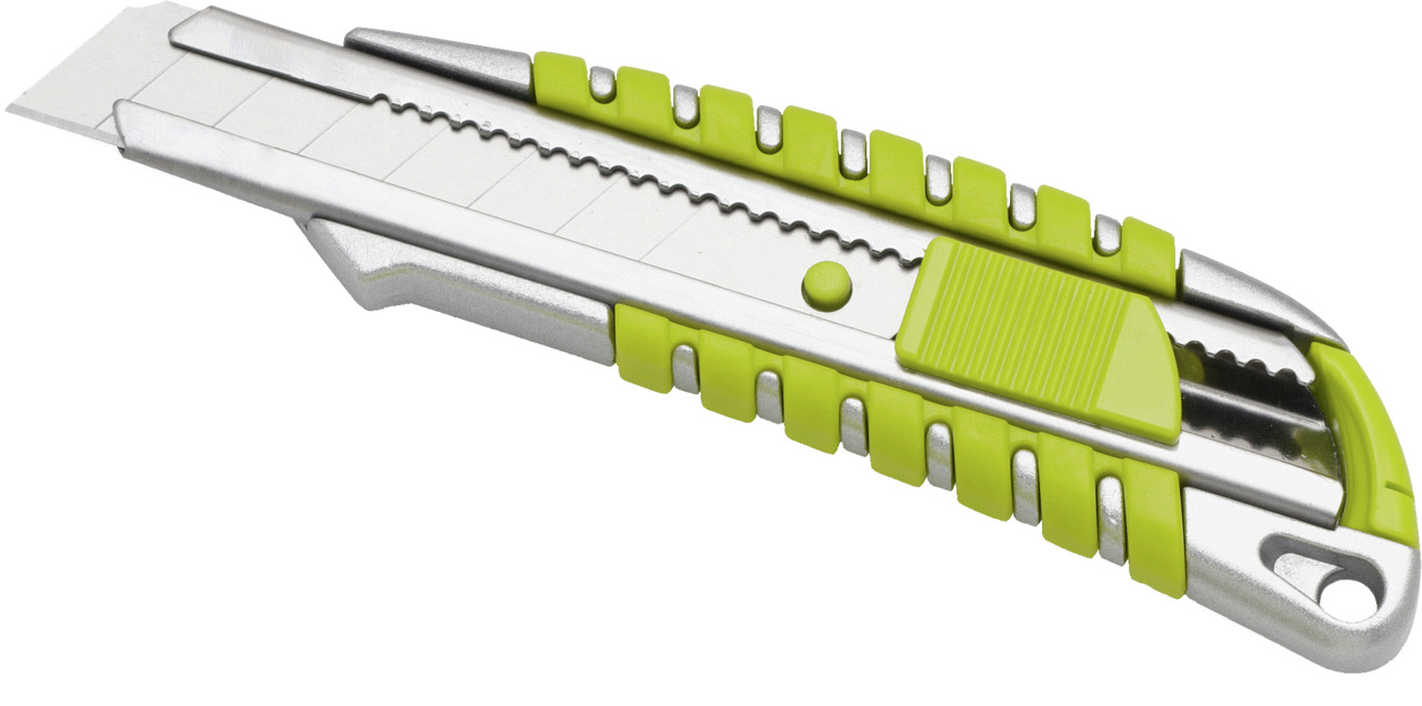 Mit automatischem Klingenrückzug und automatischer Arretierung der Klinge.